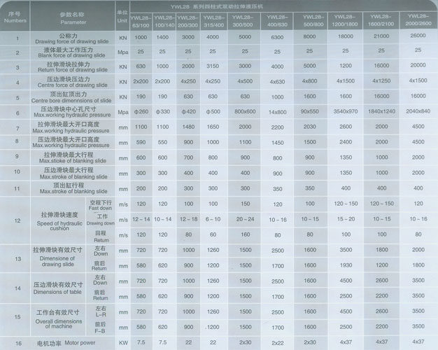 YWL28-系列四柱式雙動薄板拉伸液壓機